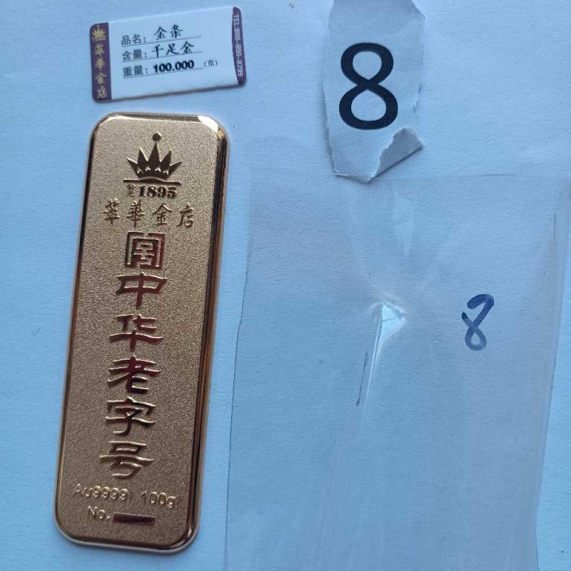 一、拍卖起拍价: “标的拍卖顺序号[8]--拍品编号(8),检验报告检测:纯度999‰,重量100克”,以2024年7月17日(拍卖当日),上海黄金交易所上午开盘交易价的90%,乘以黄金拍品实际重量(克数)为标的起拍价。